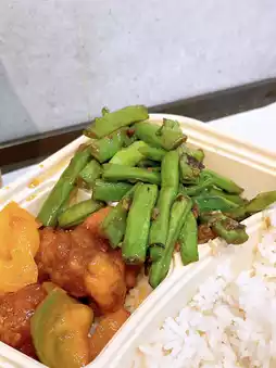 The dishes are about 30 styles, are some mainstream models, so I went when I was 2:30, so it would not fill full, so I ordered a three-dish rice, sweet and sour pork, corn fillet, fried cauliflower, the taste is not lost, so I try to see if I can go out to add vegetables, it turns out that the clerk can not necessarily add back fried cauliflower, can give me any vegetarian beans 👍🏻