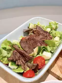 If you want to eat healthy, you can choose this salad. The steak is crispy on the outside and tender on the inside. It has a very fragrant beef flavor. It goes well with crispy salad vegetables. It's healthy to eat without burden