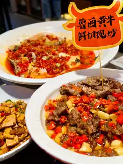Luxuriously tender Lu Xi yellow beef that melts on the tongue 🥩 Beef slices coated in golden oil, with glossy green Zhangshu Port green peppers. The spicy chili sauce and meat juices burst between your teeth ~ Highly recommend, fresh and definitely not pre-made. My friend ordered it mildly spicy, even beginners can handle it!