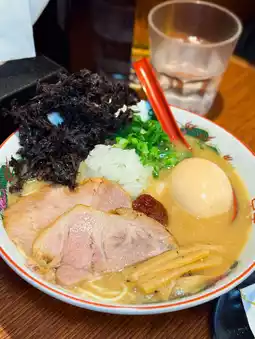 Finally visited this ramen shop that my friend always recommends, personally managed by Japanese. This time I ordered their most famous Beef Tendon BLACK Ramen🍜 The layer of black garlic oil in the broth is very fragrant, and it’s not too salty or greasy when you drink it. The beef tendon is stewed until tender and melts in your mouth. The noodles are chewy and hold the soup well, every bite is full of essence. A must-order for those who love strong-flavored ramen. I also ordered the signature Black Dragon Tonkotsu Ramen🍜 which is also top-notch. The broth is rich yet not heavy, the pork slices have a good balance of fat and lean meat, paired with egg and seaweed, super satisfying🤩