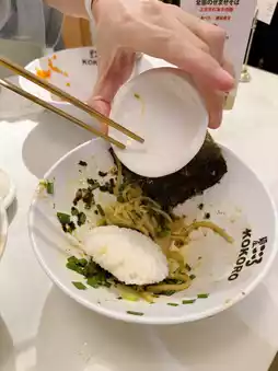 4️⃣ After enjoying the stir-fried noodles, you can ask the staff for a free mini white rice, add to the bowl and stir with the sauce to enjoy