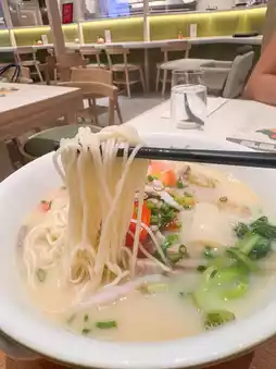 The broth is smooth and rich, and paired with the slender noodles, each bite is bursting with flavor. The toppings are also quite generous, including crispy pork skin, pork liver, tomatoes, and vegetables.