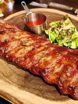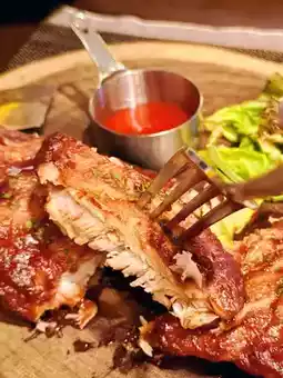 A massive portion that even men might struggle to finish. The secret BBQ sauce is a perfect balance of sweet and savory, delivering a classic American flavor.