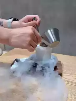 The method is actually a bit similar to Dirty Coffee. It's hot espresso with frozen milk. However, the coffee beans and glass are pre-frozen in a freezer. So, when you pour the milk into the glass, it forms ice around the rim, giving it a milk smoothie-like texture.