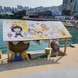 📍Wan Chai Promenade A Coastal Embankment Stairs, Coastal Embankment Stairs The first Victoria Harbor fenceless staircase coastal design, is with a wood color background with colorful illustrations and fabric installations, but note that since there is no fence, we have to be extra careful!