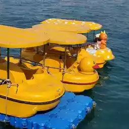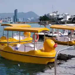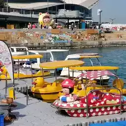 📍Beside the embankment steps can be seen riding a duck boat water bike, some are Chocolate Rain special edition pedal boat.