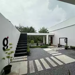The outdoor area is equally beautiful. There are black stairs for tourists to climb up and take cool photos. Or there is a walkway that is beautifully designed.