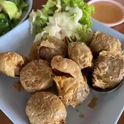 If you pass by Wang Chan, Rayong Province, you must not miss this restaurant. Chaw Rai Restaurant, the ingredients used in the food are fresh and there is also wild food. The taste is very spicy. The famous menu that you must order is the crab meat spring rolls, which are full of crab meat. Eat it with plum sauce. It goes together perfectly.