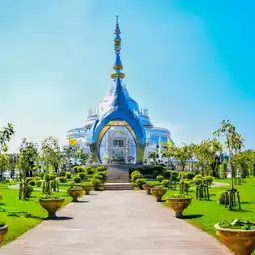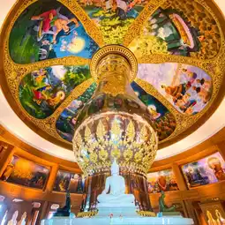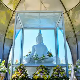 The interior of Phra Maha Chedi Si Saeng Tham Wisutthimongkol has 3 floors in total. The first floor is the base floor for the faithful to practice Dhamma as they wish. The outside is a place for walking around the Great Chedi (circling right to bring good fortune) for those who come to worship the Great Chedi.