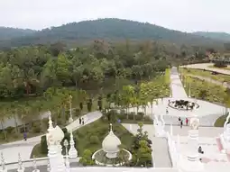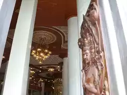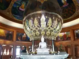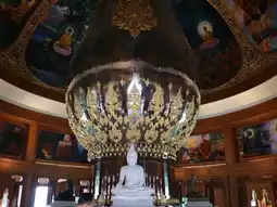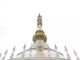 When driving into the temple, we will see the Phra Maha Chedi Si Saeng Tham Wisutthimongkhon, a white lotus flower, standing out prominently in the middle of the moat. The outer part is a large, clean green garden, making us feel peaceful in body and mind when entering the temple.