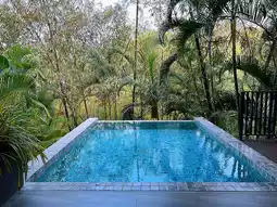 A room with a private pool surrounded by nature, suitable for a peaceful relaxation. There are many breakfast options. There is also a cafe zone and a communal swimming pool zone with a mountain view. There are many photo spots here. There is also a children's play area.