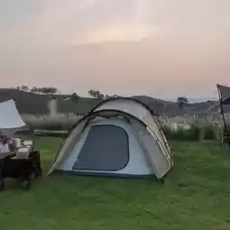 A camping ground with a stunning view, a cool camping spot with a 360-degree view of nature. The site is located near Khao Phaeng Ma, a popular spot for tourists to watch the bulls, allowing you to see the Ministry of the Interior up close. The site offers both private accommodation and a camping ground. There are tents for rent with bedding and breakfast included. There are power outlets in each block of the area. There are separate male and female bathrooms and a water heater. However, I feel that there are too few bathrooms. The site is limited to blocks. The point we chose was Block B-11, which is near the cafe and the parking lot for easy unloading.