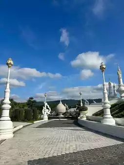 🌹 Hello, today I will take you to visit a beautiful temple in Nakhon Ratchasima Province. We are in Wang Nam Khiao. This temple has nuns and a Buddha statue on the 3rd floor of this beautiful white church. You can go up to pray for blessings for work and love or for things you want to be successful. This place is open every day. If you are too busy watching, come and visit.