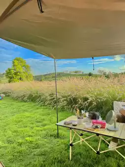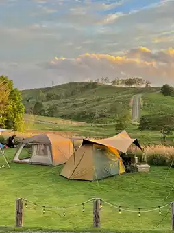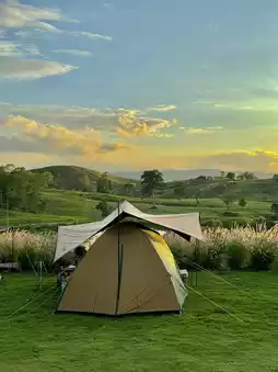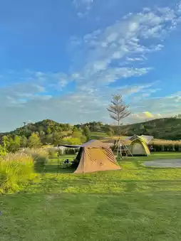 #Rainy season travel destinations, like-a-ka-ka, Wang Nam Khiao Camp & Cafe is a tent site that feels great. It's like being surrounded by green nature. The field is wide, airy, and has a beautiful hill view. The atmosphere is great. In the evening, the sunset view is beautiful. There is electricity and clean bathrooms. It is a tent site that is not far from Bangkok. It is another tent site that I really want to go back to. 💚🫶🏻