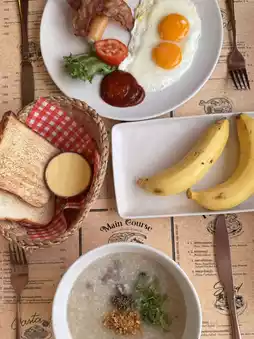 🍴Breakfast is included, and the food is served in a set menu, which was very filling.