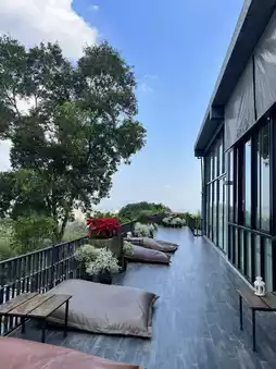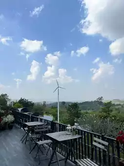 The cafe offers both a cool indoor area and an outdoor area with panoramic mountain views. If you visit in the morning, you'll experience a light mist and a pleasantly cool breeze. We recommend bringing a hat or sunglasses if you visit in the afternoon. 🌤 There's ample parking, and it's not far from Khao Yai's main attractions.