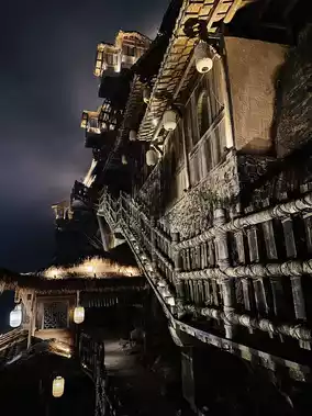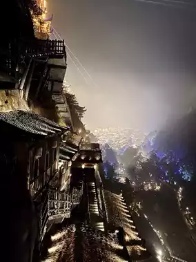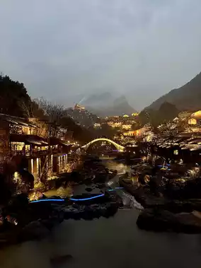 Walking across the glass skywalk, you’ll feel like you’re floating above the valley 🌌, while at night, lanterns light up the wooden houses, giving the whole village a dreamlike glow. 🏮✨