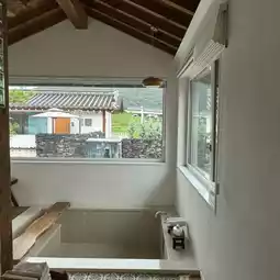 There is a smart TV in the spacious living room, pretty dishes in the kitchen, Aesop amenities in the bathroom, and windows in the two bedrooms that offer a green view. And next to the bathroom, there is a space where you can take a half-bath while looking outside. It was the best accommodation from start to finish, and if you go to Jeonju, I recommend Staybyulha :)