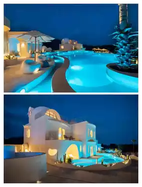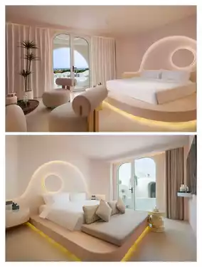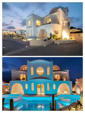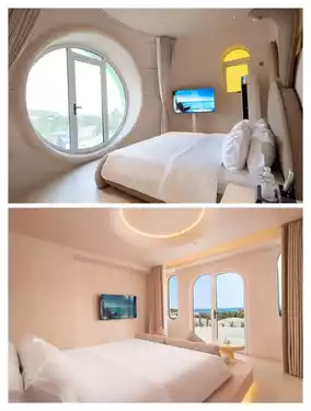 The homestay is designed with the theme of gifts, a snow-white castle style that makes you feel like you're in a fairy tale. In the evening๐โฃ๏ธ๐, as the warm-toned lights come on and the sky darkens, the entire homestay exudes a romantic and charming atmosphere, making you feel like you've traveled to the Santorini coastline!~๐จ๐ณ๐๐ฉ