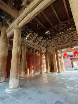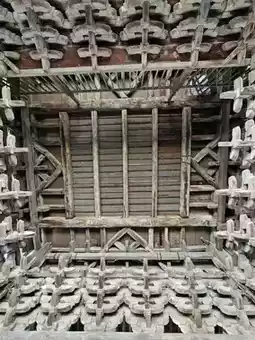 The uniqueness of Feiyun Tower lies in its use of mortise and tenon structure, with the wood itself not covered with paint, showing the most authentic color. There are three layers of alternating light and dark inside the building, with four pillars reaching the top of the building, and 32 cypress trees around it supporting the entire building in a checkerboard pattern.
