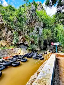 The rafting route is quite diverse. Some sections have rapid currents that are thrilling, almost like riding a roller coaster, but in a natural setting.