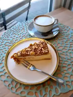 I ordered a latte and a slice of cake, and the smooth milk foam and subtle coffee aroma complemented each other perfectly. 🍰☕