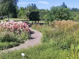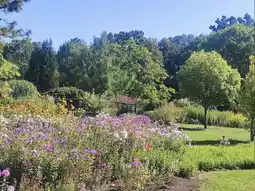 The manicured sections, like the Romantic Garden and the Modern Garden, offer a sharp contrast to the wilder parts. In fall, these formal spaces showcase structure over color, with pruned hedges and skeletal rose bushes creating geometric shadows on the damp earth. This forced order, resisting the natural chaos of the season, gives these areas a disciplined, almost stark beauty that feels cold but incredibly artistic—a sophisticated take on the 'bare bones' look of winter approaching.