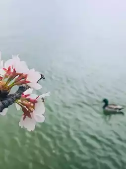 * At sunset, the lake reflects the pink cherry blossoms, creating a romantic scene perfect for a stroll.