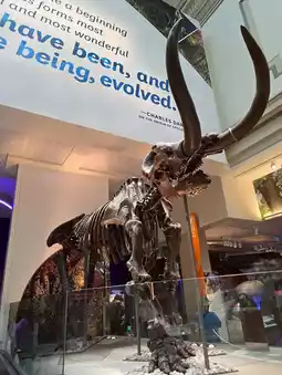 The museum showcases the evolution of various animals and plants from ancient times to the present day, particularly the realistic display of animal skeletons.
