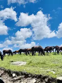 Admission is 25r, but the highland grasslands are worth it. Perfect for photos 📷, with wind turbines and yaks dotting the landscape, plus fields of honeysuckle.