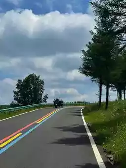 This three-colored road is a favorite among visitors. Sit on the rainbow for photos or follow it to discover wind turbines at the end.