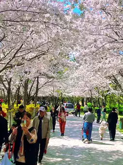 This is a popular cherry blossom viewing spot in Weifang's urban area. During the peak blooming season, more than 70 Somei Yoshino cherry trees bloom in full glory. The layered petals are like clouds and snow, creating a romantic pink corridor. Especially when night falls, the lights and cherry blossoms complement each other, creating a hazy and dreamy atmosphere. Every shot is a stunning photo.