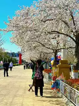 🌸Variety: The main variety here is Somei Yoshino cherry. During the full bloom period, the trees are covered with pink and white flowers. When the wind blows, the petals rustle down, creating a dreamy "cherry blossom rain." There are also a small number of double-flowered cherry blossoms on the north side of Shengli East Street, which are super beautiful and perfect for taking pictures!