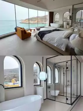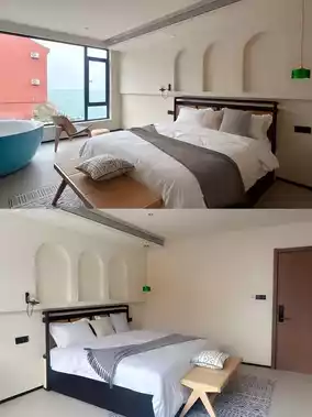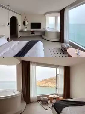 🏨The rooms are clean and tidy, the bedding is comfortable, and the 180-degree large sea view floor-to-ceiling windows are a pleasant surprise. You can see the sea when you open your eyes, and you can see the sunrise and sunset at sea while lying down.