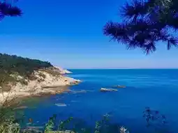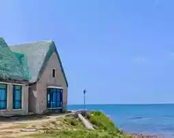 ✨ International Bathing Beach: The golden beach under the blue sky and white clouds is an ideal background for photos.