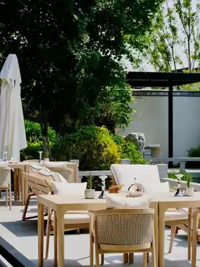 The entire resort consists of detached Chinese courtyard villas, each with a huge terrace and a golf putting practice area. The rooms start from 90 square meters and are very spacious. The villas are decorated in a quaint style, with wooden furniture and elegant decorations, showing elegance in every detail. Staying here for a night is a complete relaxation.
