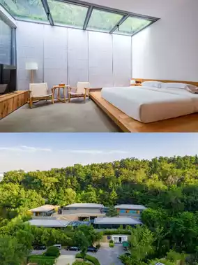 The rooms are in Japanese minimalist style🪟, with great lighting and views, and there is an independent outdoor private hot spring, with a courtyard of bluestone and green plants, natural and tranquil🍃