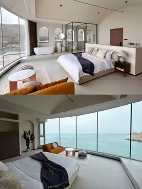 During the day, sip a cup of coffee while gazing at the azure sea outside the window, enjoying a leisurely afternoon. At night, fall asleep to the sound of waves, cradled by the starry sky and ocean, dreaming of Weihai's gentle embrace.