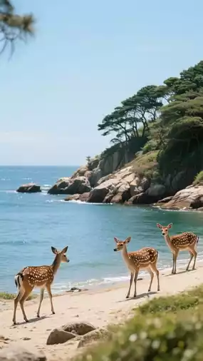 The island’s ecology is excellent, with freely roaming sika deer, like a secret sea paradise.