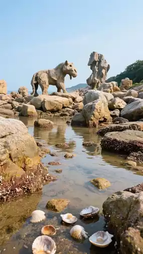 Strange Rock Park: jagged rocks shaped like animals, shells to collect at low tide;
