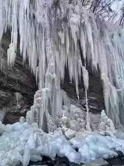 2. Do not get too close to the ice waterfall for safety.