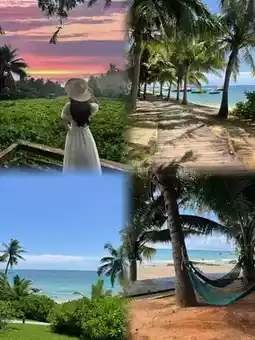 This is the ideal island style🏝blue sky and white clouds, soft sandy beach, clear sea water, cute shells of all sizes forgotten by the sea, crooked trees on the beach🥥Drinking coconut water, feeling the wind, feeling the sound of the waves, time slows down