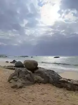 We went there quite early, and it was winter, so the sea water was not so clear, and the sky was a bit grey. Even so, it didn't affect the unique tranquility and beauty of Qishui Bay. But also because of this, there were few tourists on the beach, allowing us to fully enjoy the beach and the waves. I am a severe sea lover, who can go to see the sea all year round, stepping on the soft sand, facing the salty sea breeze, with the sound of the waves heavy and melodious in my ears, sometimes mysterious, sometimes surging, sometimes gentle. Qishui Bay is the first vacation beach we visited in Hainan, with all the seaside elements such as coconut groves, sea, and beach. Because there are few people, the traces of commercial development are also not too bad, without too many messy marine entertainment projects. You can walk to the seaside and let the waves wash over your feet, or you can bend down and slowly pick up pretty shells. The photos taken can avoid crowded backgrounds and are less likely to cause social anxiety. I heard this is a good spot to watch satellite launches, and I really hope it won't spoil the tranquility of this niche beach for these reasons. A slow-paced beach, very suitable for friends who only like nature to visit.
