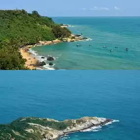 This is where Wang Hedi filmed the variety show "Fifty Kilometers of Peach Blossom Pier" in Hainan. Huwei Bay features two bays, each with its own distinct charm. One bay is particularly interesting, allowing you to drive directly to the shore (an SUV is recommended for navigating the terrain). Imagine driving right up to the ocean's edge, experiencing an intimate encounter with the sea, as the refreshing sea breeze carries the scent of the ocean, invigorating your senses.