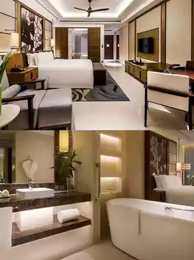 - Tropical seaside style: The hotel is designed in Southeast Asian tropical style, distributed on both wings with the lobby as the axis. The public area is elegantly designed and full of Chinese charm, surrounded by lush green plants, full of tropical seaside style.