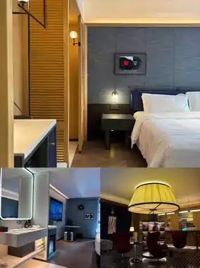 Rooms are excellent. The room was warm and elegant. The bedding was soft and comfortable, and the latex mattress was incredibly springy. Lying down felt like being enveloped in a cloud, and my sleep quality skyrocketed. It also had a standard desk and chair, making it comfortable for working on my computer. The bathroom had separate wet and dry areas, and the toiletries were high-quality, with plenty of attention to detail. Most importantly, there were no mosquitoes buzzing at night, which was a welcome relief.