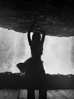 • First Tier Lower Boardwalk: Shoot from a low angle looking up, letting the waterfall pour down from above, crop out the excess in post, instantly turning it into a movie poster of “small and shocked under the waterfall.”