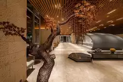 Walking through the hotel, you will find many clever artistic installations, making the indoor area full of delightful surprises. The lobby is on the 5th floor, with huge floor-to-ceiling windows bringing natural beauty inside; the space mainly uses rock and wood elements, fully enhancing the natural atmosphere. In short, every curve listens to the hydrology and terrain; every cluster of vegetation pays tribute to the native ecology.