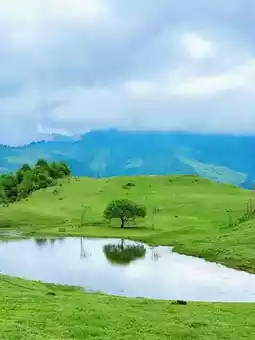Wolong Dry Lake, stepping on pine needles all over the ground, looking at the loneliest tree on the top of the mountain