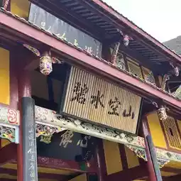 The rear hall, still perfectly preserved, is built in traditional Taoist style and enshrines a rare statue of the Yellow Dragon immortal. The temple’s gate is a masterpiece of craftsmanship — its alignment lets you see “黄龙古寺” head-on, with the left view transforming into “飞阁流丹” (Flying Pavilions, Flowing Crimson) and the right into “山空水碧” (Mountains in the Sky, Emerald Waters), hailed as a wonder of architectural aesthetics.
